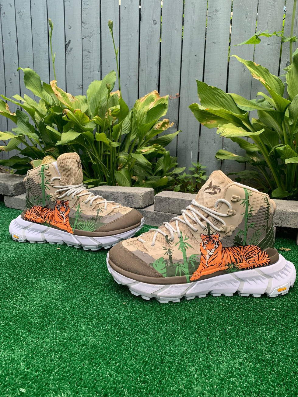 - Designs on Shoe: Tiger, Bamboo trees, Bushes, and Mountain silhouette,